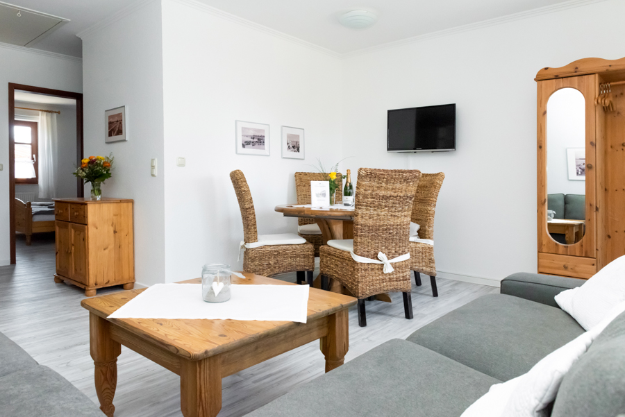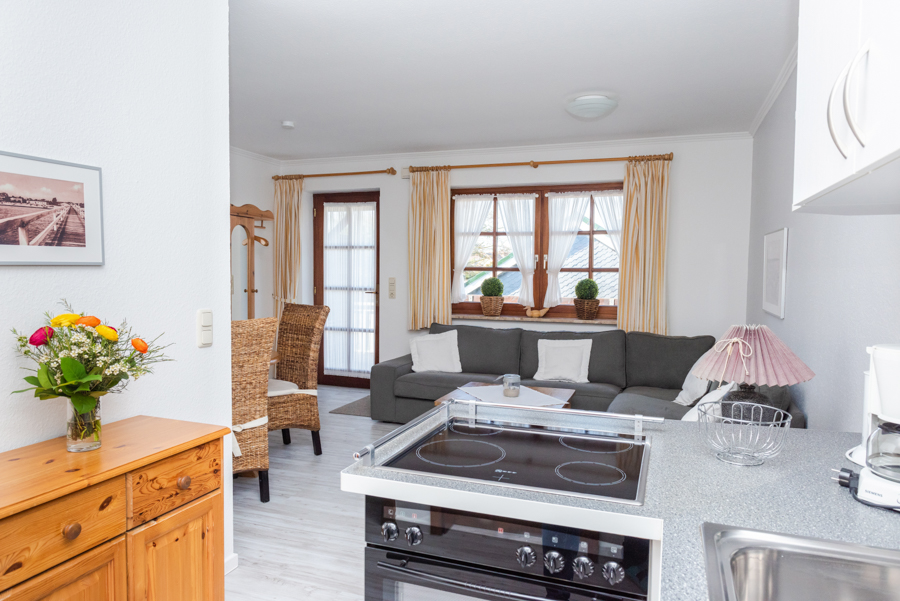 50 qm Wohnung bietet Platz für bis zu 4 Personen im Erdgeschoss.